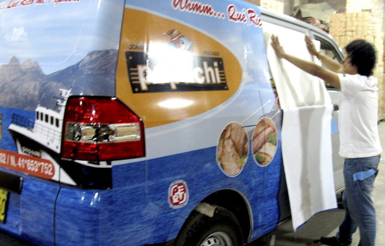 Colocamos vinil aderible, estático, microperforado, sobre cualquier supeficie.